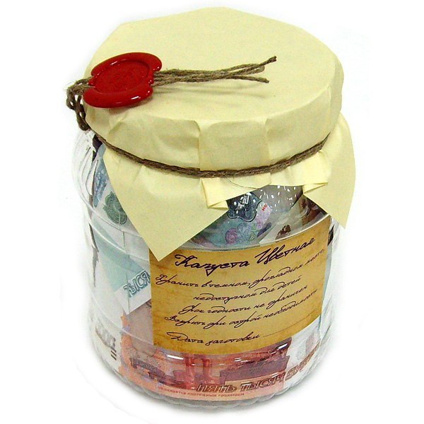 Можкет типа такого? Просто баночку стилизовать под "Лав из"и насыпать в нее жвачки... распечатать на принтере картинку, сделать подпись соттветствующую..
