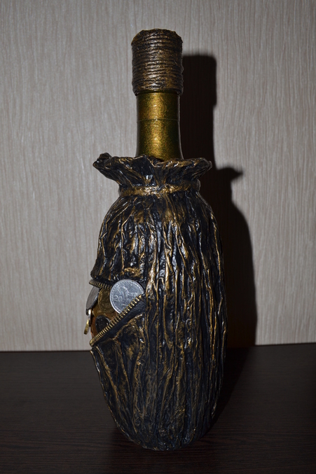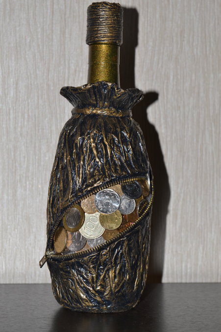 Первая - имитация денежного мешочка (молния, бумага, ПВА, акриловые краски, лак и монетки)