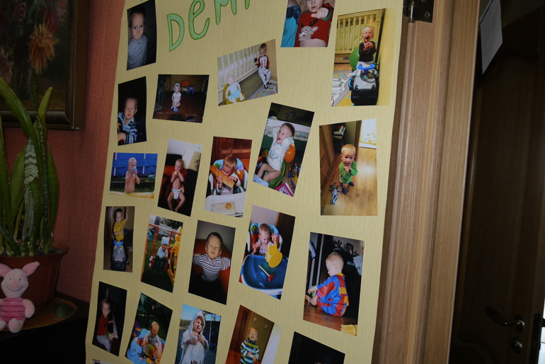 По традиции решила сделать плакат. Назвала его "такой разный Дёма". Собрала самые веселые фотографии за год и наклеила на обои.