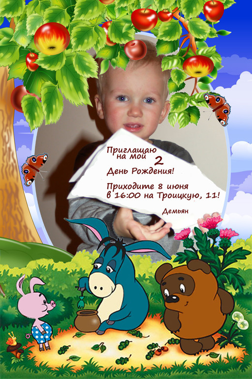 На первом этапе я довольно быстро смастерила приглашения - решила в этом году не тратить на них много времени, как в тот раз. Нашла подходящий шаблон в Интернете, подготовила в фотошопе картинку с текстом для загрузки на сайт, и вуаля...