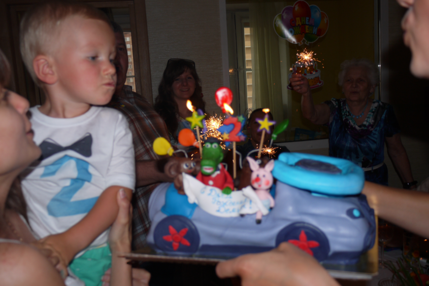 Конечно же гвоздем программы второго дня был торт! Но и в первый день сыну понравилось задувать свечку:)