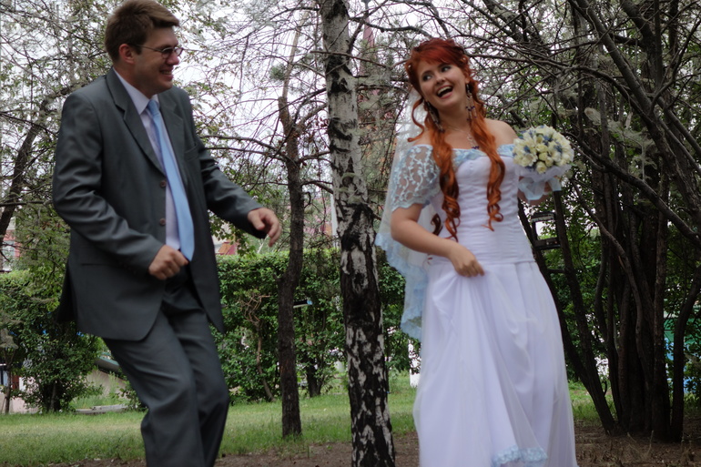 СвадьбаСказать, что это было волнительно - значит ничего не сказать!!!!! Мне пришлось утирать слезы везде, где только можно и нельзя))) В ЗАГСе я вообще боялась, что разрыдаюсь. А когда встречали молодых после катания хлебом-солью, у меня судорогой так стянуло лопатки, что чуть сознание не потеряла. Спасибо, муж под локти поддерживал)) Хотя, и он выглядел не намного лучше.