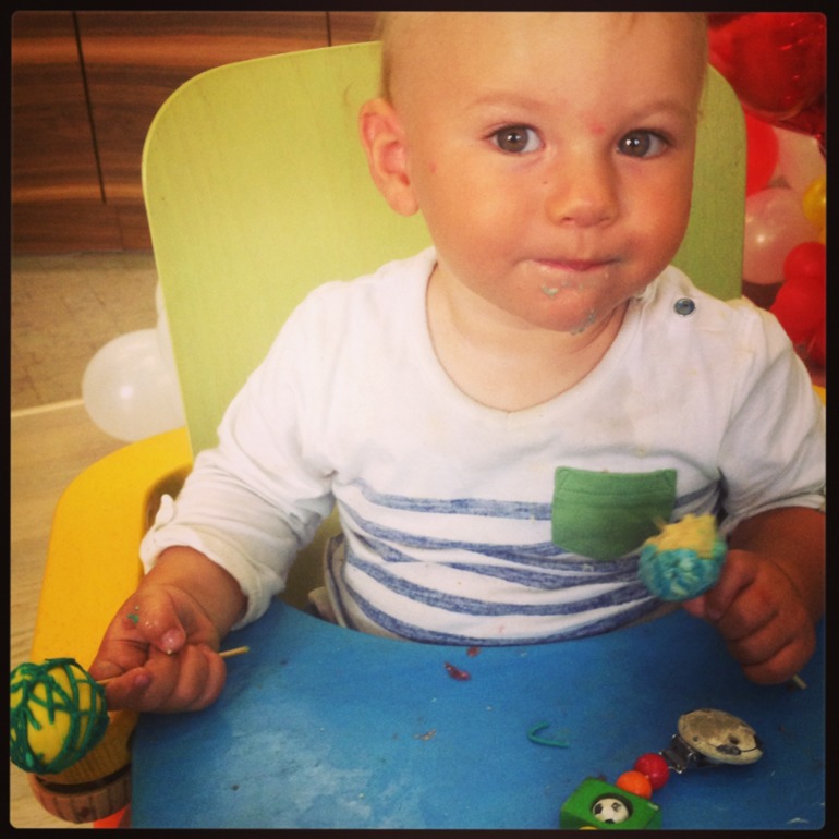 Мой сладкий именинник)) лопает кейк-попсы
