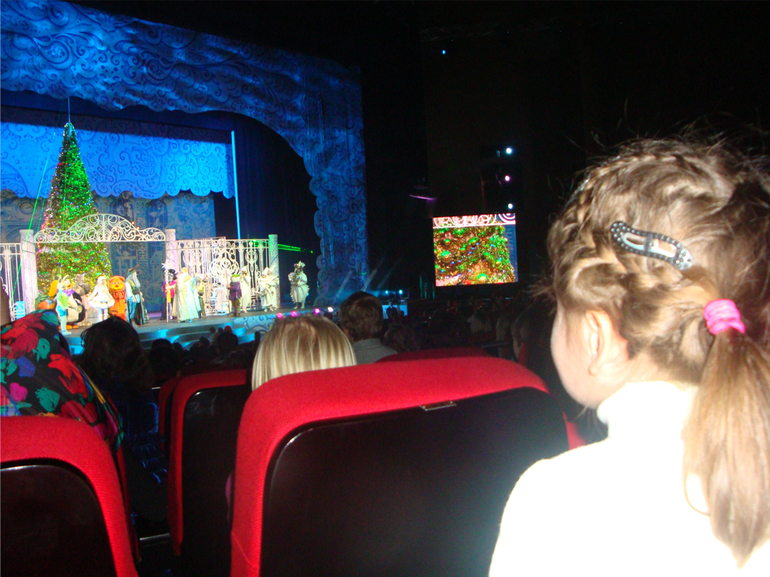 у нас были замечательные места толи в гранд партере то ли в вип партере - не помню как назывался ))) по серединке. Видно было хорошо. Не понравилась сама постановка, не понравились летающие шары сверху - мне очень сильно такой по голове попал - шея потом болела, хорошо хоть не по дочке попал. Посмотрели потом на диске видео с прошлых - они каждый год даже толком декорации не меняют