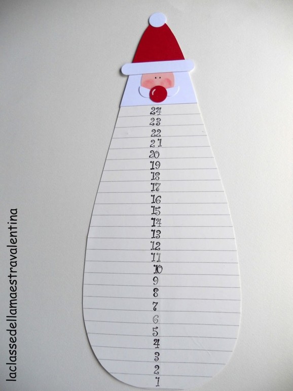 Голова Деда Мороза (она меня и вдохновила на такой календарь) совершенно случайно прилагалась в качестве упаковки к новогодней мелочевке. К ней нарисовала 2 стороны бороды. Лицевая на фотке, просто разлинована и проставлены цифры от 1 до 31.