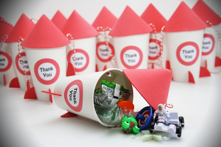 Сюрприз от Масяни гостям - сам сделал ракеты для гостей - в них положили конфетки. Гости могли срезать понравившуюся ракету.