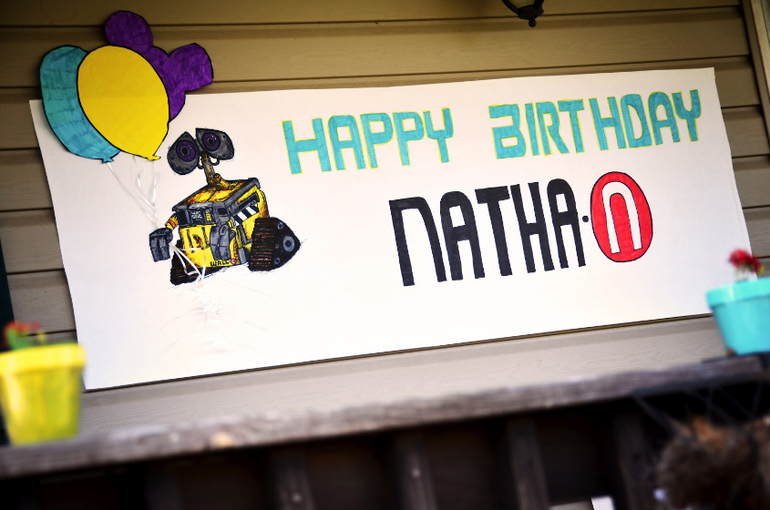 В этом году первый день рождение, который Макс ждал и желал всем сердцем. Тематика была выбрана заранее и навеяна "Островом Сокровищ"....НО все изменилось в один миг, после просмотра мультика "Wall-e" - мы ложились и просыпались только с мыслями об этом грустном и милом роботе. Пришлось в срочном порядке менять концепцию и отправляться в космос.