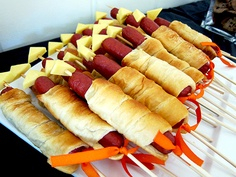 - сосиска в тесте (ракета:нос сыра треугольник и на шпажку хвост из бумаги)