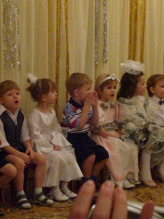 Первые заходят конечно моя Эвелинка и одна воспитательница.
