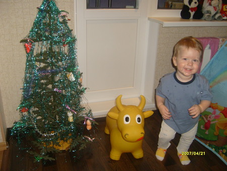 Мы чуть голову не сломали когда придумывали что подарить нашему малышу. У нас кризис на работе, денег получили мало, но хотя бы сыну надо было что-то купить, а денег всего 500 руб. Ну машинок ему хватает, книжки мы пока только рвем и грызем нам ведь только 1г 4 мес. На развивалки денег не хватит, они уж очень дорого стоят. Поехали по магазинам и не потратив и часа определились. И ведь не пожалели. Папа правда не удержался и подарил сынуле подарок не дождавшись 1 января. Но зато теперь ребенок знает куда девать свою энергию. Зацените!!!!!(Необращайте внимания на нашу елочку, половину игрушек сына уже снял и сгрыз и т.п.)