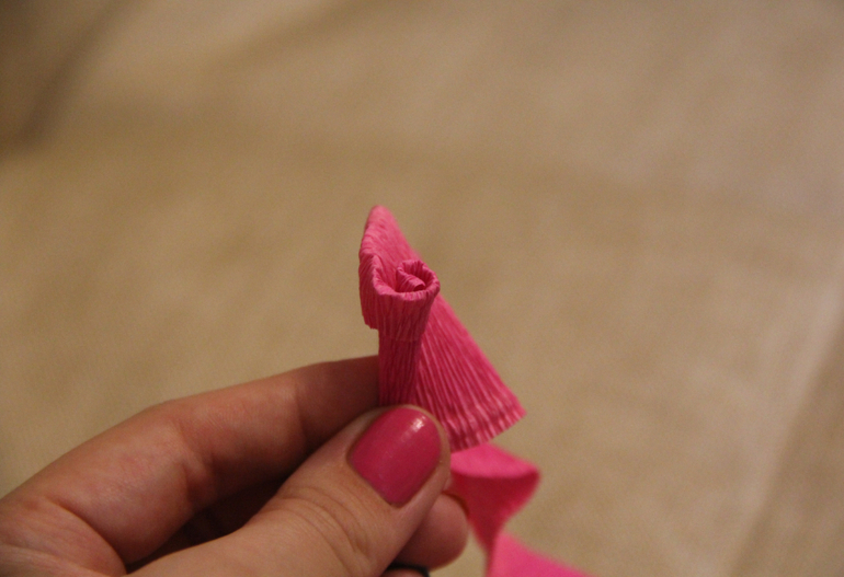 Начинаем формировать розочку. Закручиваем так, чтобы загнутый край был с внешней стороны.