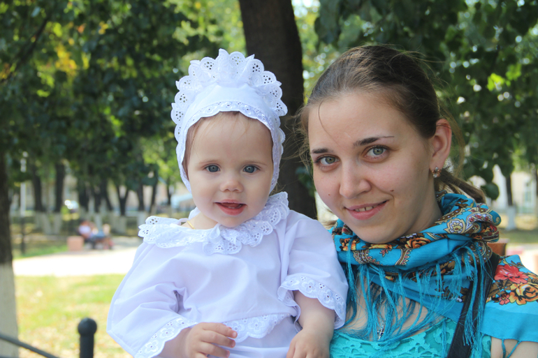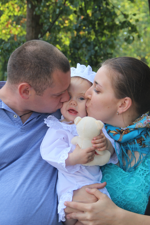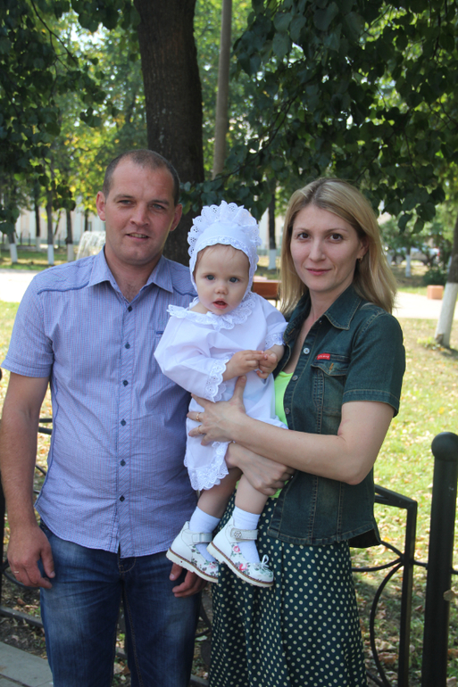 Крестные родители Майечки. Очень жаль, что мама не успела приехать к самому Крещению, простояли в пробке. На самом таинстве присутствовал только папа.