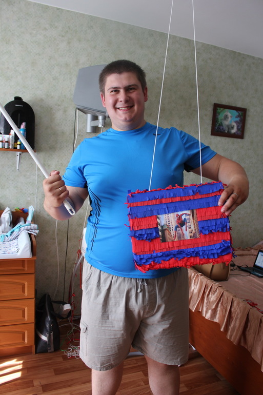Пиньяту Славик разбил довольно быстро, а потом приступил к сбору сувениров и сладостей...