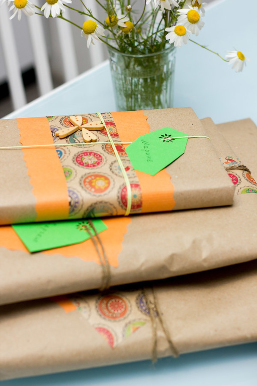 ПодаркиЯ новичок в этом деле. Раньше я, конечно, задумывалась об упаковке, но чаще всего покупала симпатичный бумажный пакетик и все. Но вот эта страничка из жж очень вдохновляет на создание других подарков. И вот как раз 3 дня рождения близятся. Из материалов у меня нашлись ленточки, пуговки. Крафт-бумагу обычную стянула в строительном магазине в зоне упаковки :) А вот цветную пришлось поискать, и нашла её всего чуть-чуть.