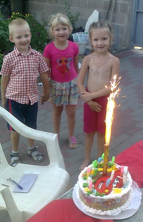 День рождения Детскийрешили в итоге не ездить никуда по жаре после того,как у него случился солнечный удар, никаких детских комнат и т.п. собрали деток, я развлекала их конкурсами, сладкий стол устроили. Всем вроде понравилось, а главное имениннику! А вот и он сам.