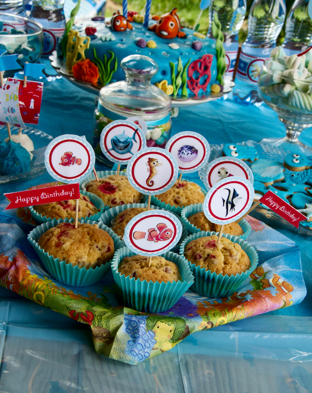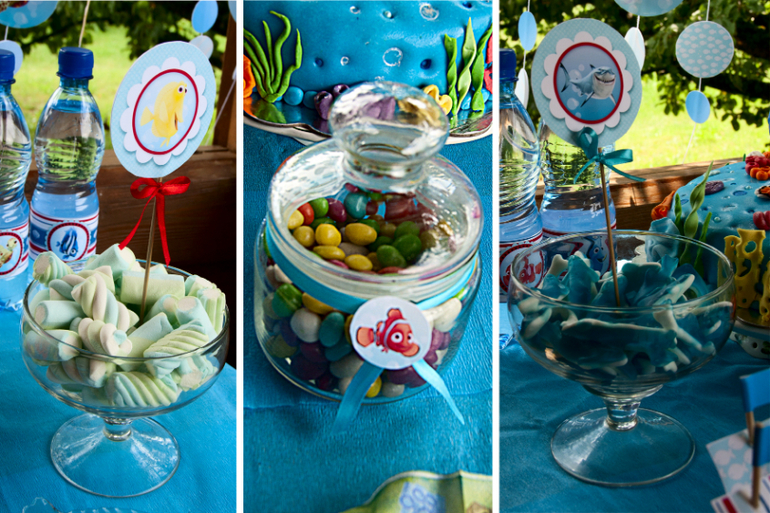 День рождения ДетскийВсе рыбки у Павлика называются Немо, Дори или акула... И мультик этот очень нравится... И хоть я думала сделать детский праздник по Тюльке Дж.Дональдсон, но решено было сделать семейное застолье. Оформление в стиле океана и поэтому тема была выбрана по мультику "В поисках Немо", так как в отличие от Тюльки взрослые с этим персонажем знакомы хотя бы по рекламе...