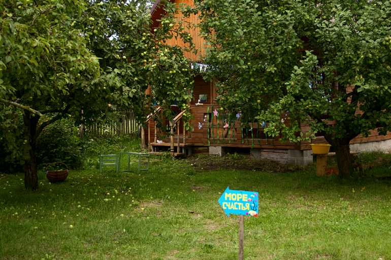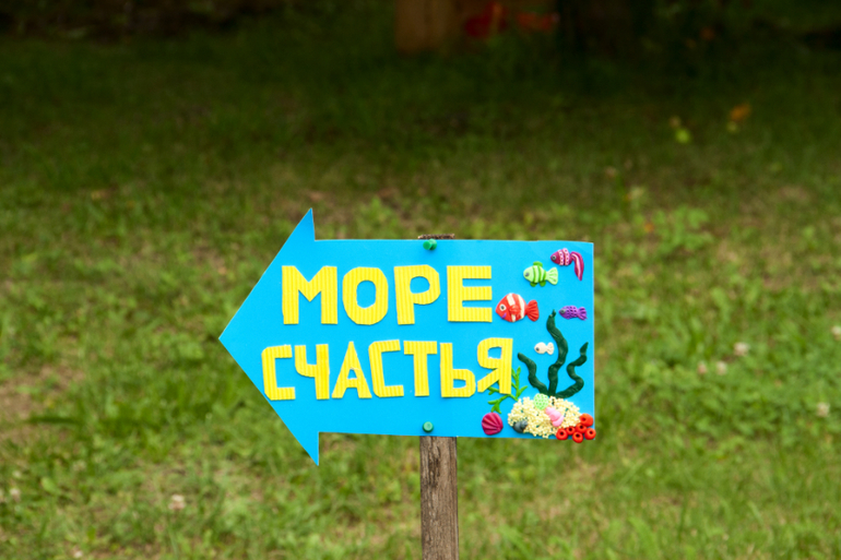 Праздник был на веранде на улице. Стоял указатель чтобы не заблудиться, который и делали вместе с детьми. Даже Пашка с удовольствием размазывал платилиновые водоросли... На веранде должен был быть еще один указатель "Коралловый риф Павлика", но его не доделали, лень стало...