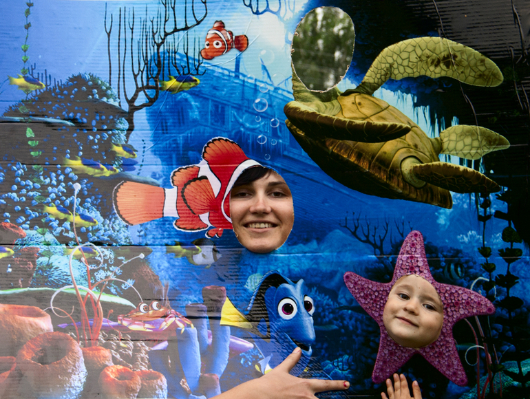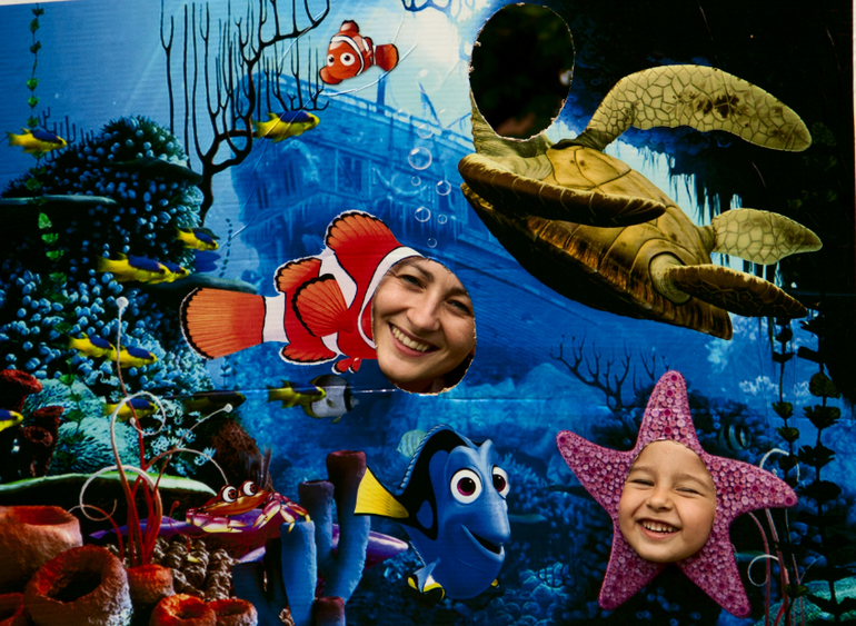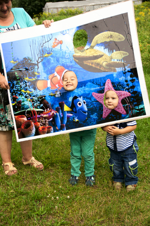 А после чая немного пофоткались в фотозоне.... Вообще сделала два "стенда" - коралловый риф с рыбками из мультка и акулу с дырой в пасти чтобы туда голову просовывать... Сколько нервов потратили в типографии в Минске, они неправильно распечатали перепутав размер при переводе формата... А в итоге акулу даже не оформила, так и лежит в рулоне без пользы... Настроения не было из-за отказа гостей...