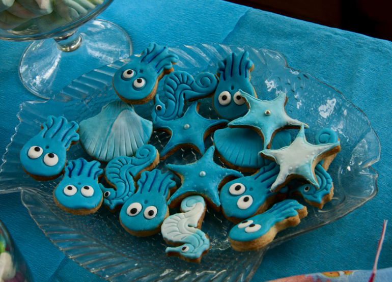 А это песочное печенье с мастикой, опять же жители подводного мира. Сфоткала правда верх ногами почему то...