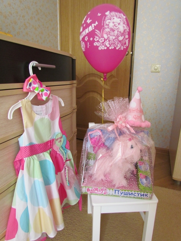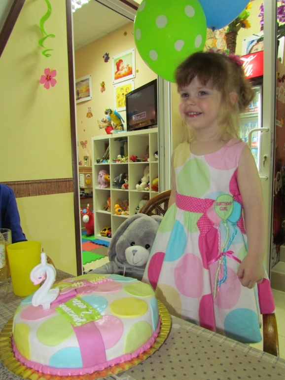 День рождения ДетскийВот решила поделиться фото со дня рождения дочи, её 2-х летия). Долго искала оригинальное платье, банальные пышные платья уже надоели, нашла не банальное пышное американское платье). Платье супер для дня рождения летом, лёгкое, хлопок, яркое, то, что надо, да ещё и написано на нём "День рождения девочки". Ну, и так как у меня есть хобби по выпечке и украшению тортиков из мастики, то к этому платью требовался тортик под стать. Кстати, платье нам уже не нужно, оно в идеале и в подарок резиночка в кружочек). Вот, что получилось