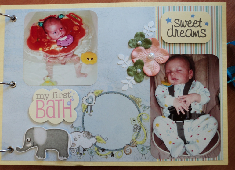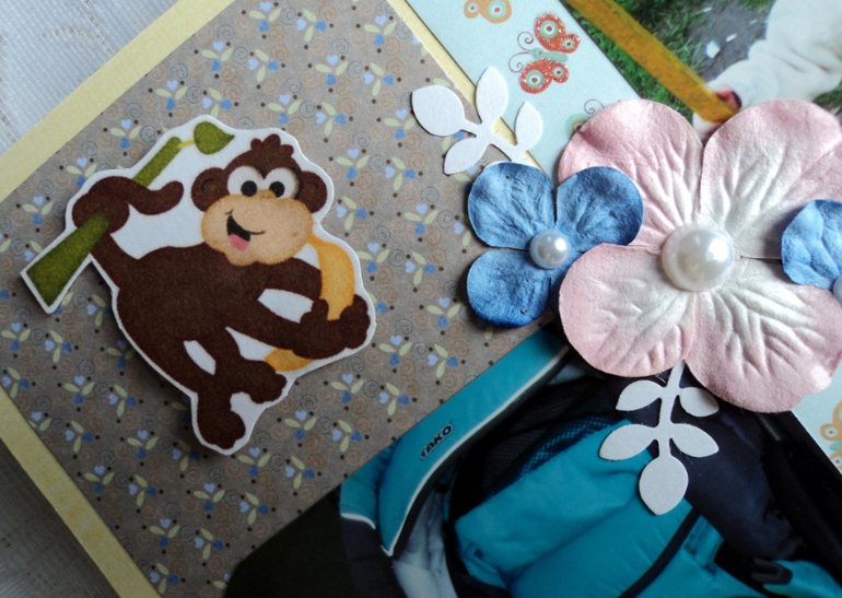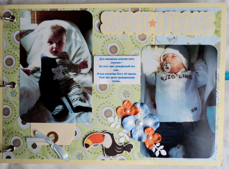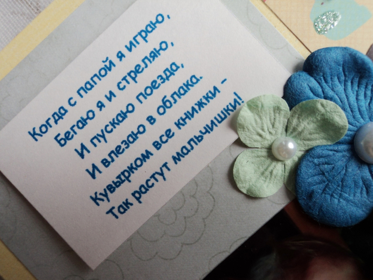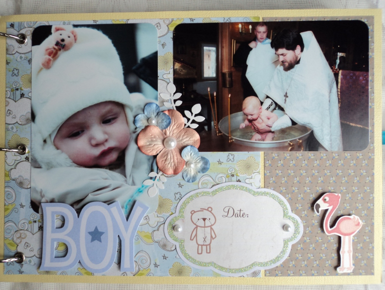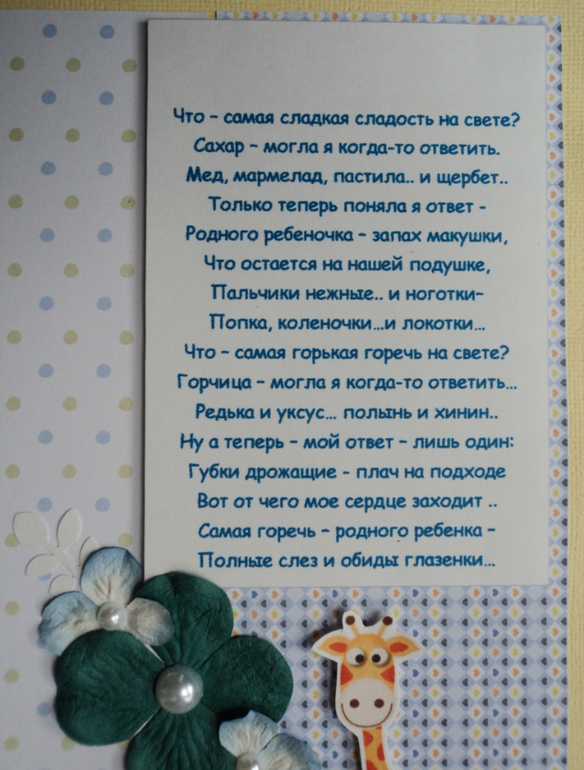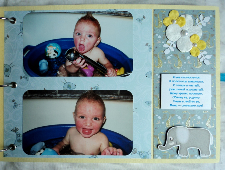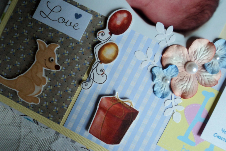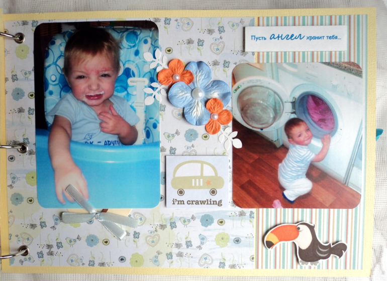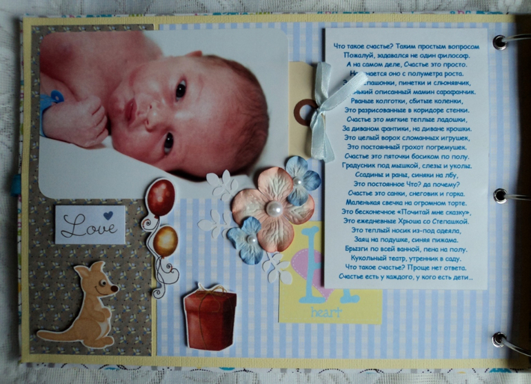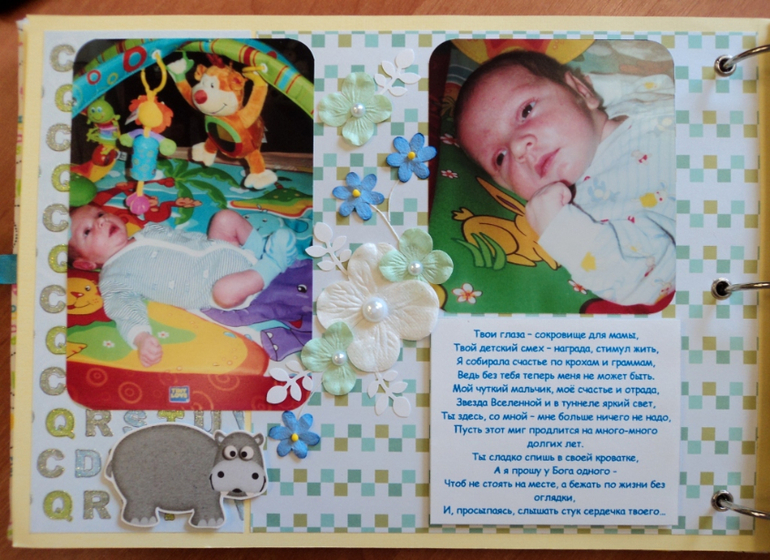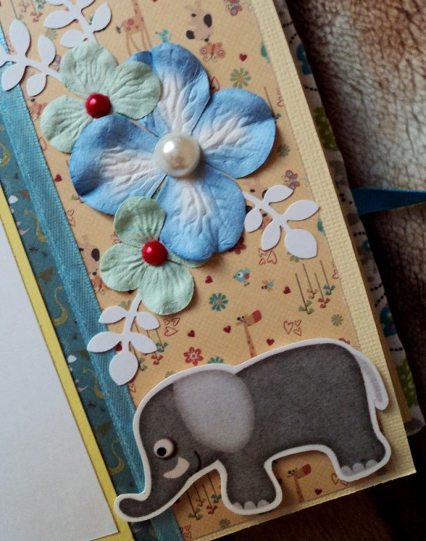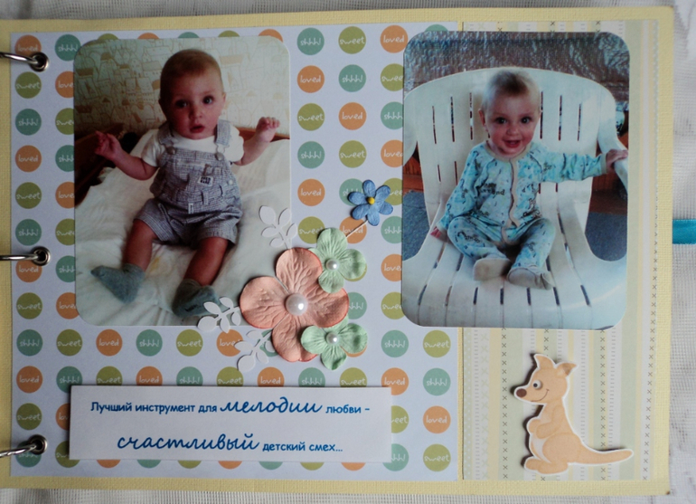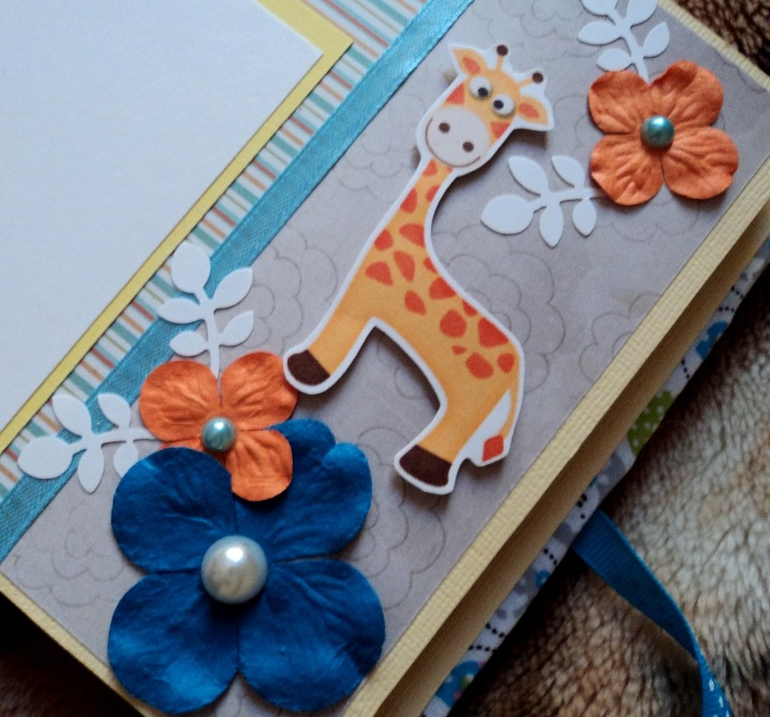 Весёлый и задорный комплект на День рождения мальчика. Альбом формата А4, 10 разворотов, мягкая тканевая обложка, вмещает много фото, есть бирочки для записей, кармашки, стихи. Книга пожеланий формата А5, мягкая тканевая обложка, 8 разворотов. На каждой страничке место для пожеланий, а в середине альбома разворот «На кого же я похож». На одной страничке - фото с папой, на второй - с мамой. Под фото вставлены тэги для записей, на которых гости будут писать чем Мишенька похож на папу и на маму). Книга дополнена украшениями - картинками «Зоопарк», цветами, жемчужинками. И коробочка для первого локона. Итак, смотрим... ООООчень много фото))))