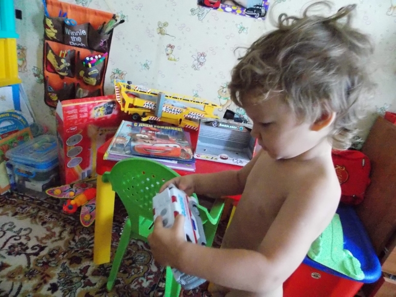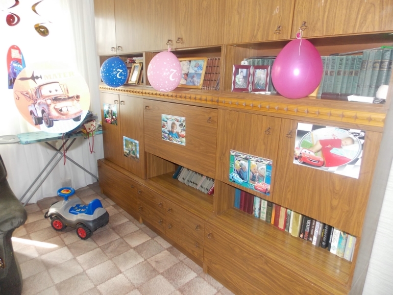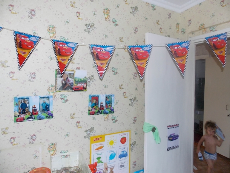 Над кроватью красовался большой плакат Молнии, на окне висела растяжка "С днем рождения", само собой шарики и фотографии в "тачковых" рамках
