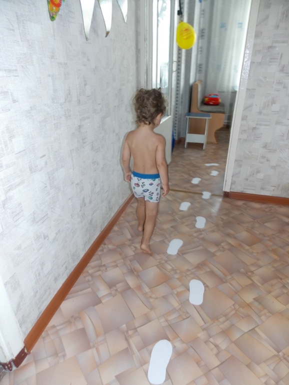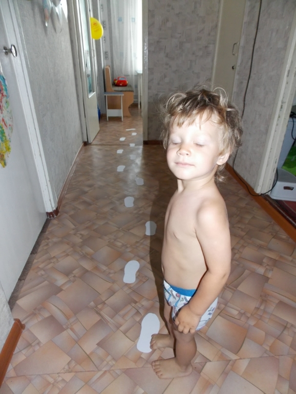 А потом... "Мам, это что? Туда?" ))) догадливый))))) а наступать поначалу побоялся)))