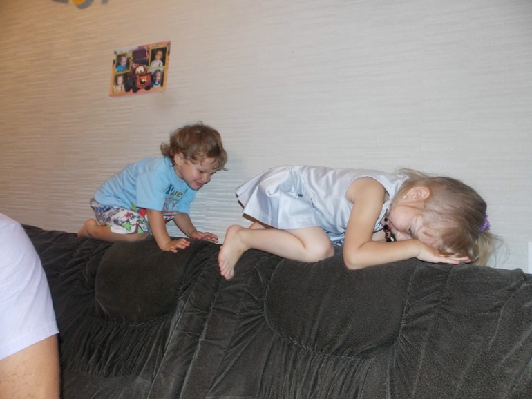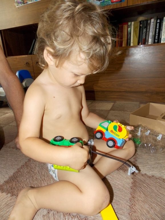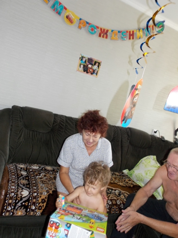 А после обеденного сна приехали к Святу редкие, но для его маленького сердечка несомненно дорогие, гости - папа, деда и баба, и тетя с сестренкой. Полвечера разбирали и играли с подарком от дедушки и бабушки с железной дорогой. Фоток нет, к сожаленью, так как я в этом процессе участия не принимала. Скажем так, всю комнату заняла новая дорога и мне не осталось там места))))