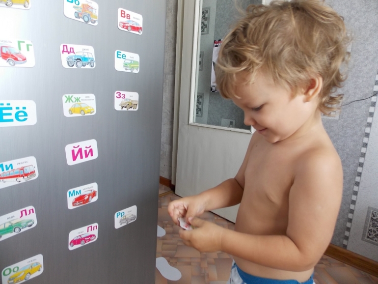 А в кухне уже побывал Мэтр, оставил Святке магнитную авто-азбуку и письмо!