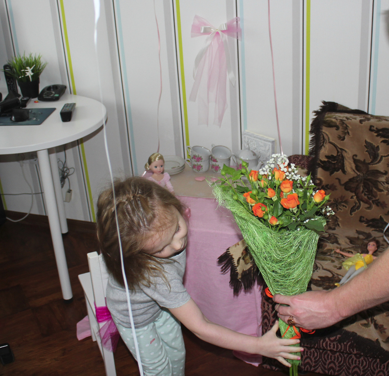 Папа наш каждый год дарит нам цветы! Это у нас уже, своего рода, традиция)