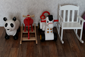 Вообщем-то набор стандартный:прыгунки/кони/качалки,коляски/куклы большие и маленькие,домик интерактивный,машинки,пакетики с животными,с Пеппой,много книг,пособий и развивашек,куча всякой мелкой ерунды,которую я даже уже вспомнить не могу,бабушка подарила золото,а так у нас и серьги,и подвески давно лежат,еще с рождения.По зверям и нашим играм с куклами напишу отдельно в сообществе "раннее развитие",я там обитаю.Ну и осенне-зимнюю одежду никто не отменял