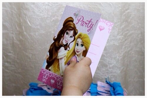 На кухне постелили скатерть "Принцессы",ну и вся атрибутика стандартная была "Принцессы".Приглашения: