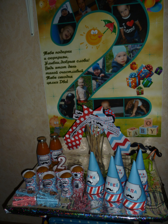 Было не просто совместить подготовку к ДР с работой, только благодаря моему мужу и его помощи, я осуществила все задуманное и получилось все так, как хотела))) К приходу гостей все уже было готово, даже именинник поспал и получил свои первые подарки))))