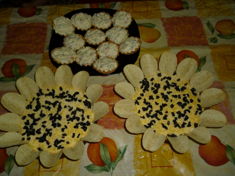 Салат Подсолнух . Салатик делала впервые, очень вкусненько, делала в глубокой тарелке, так рука берет))))