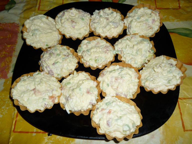 Тарталетки. Начинка- семга+сыр+майонез+огурец+яйцо: