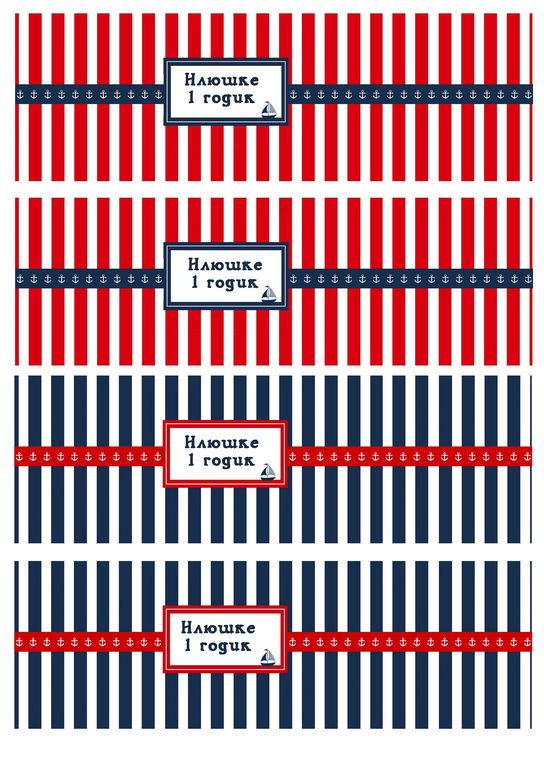 По нарядам. Главного виновника торжества одену в джинсы и голубую рубашку с якорем (наклейку заказала отдельно). В течении вечера переодену в легкий летний полосатый костюм или есть боди с наклейкой капитана. Я и муж будем в тельняжках, дочка в морском платье.