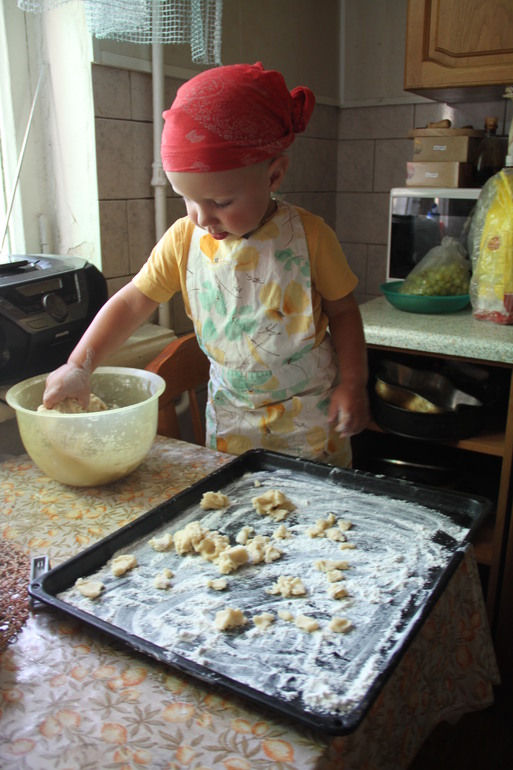 В детстве я всегда помогала маме печь торт к празднику, это хорошая традиция и я решила её продолжить, Егор помогал делать «Муравейник» для домашнего чаепития. К самому торжеству моя мама испекла свой «Медовик», это несравненно! Никто в нашей семье не любит магазинных и мастичных тортов.