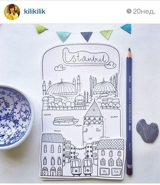 а взрослым, мы дарили "набор" для изготовления открытки.. я нашла в инстаграме девочку @kilikilik , иллюстратора, которая рисует различные города.. только не все так просто.. город надо вырезать. а потом все части склеить, и при желании разукрасить!)