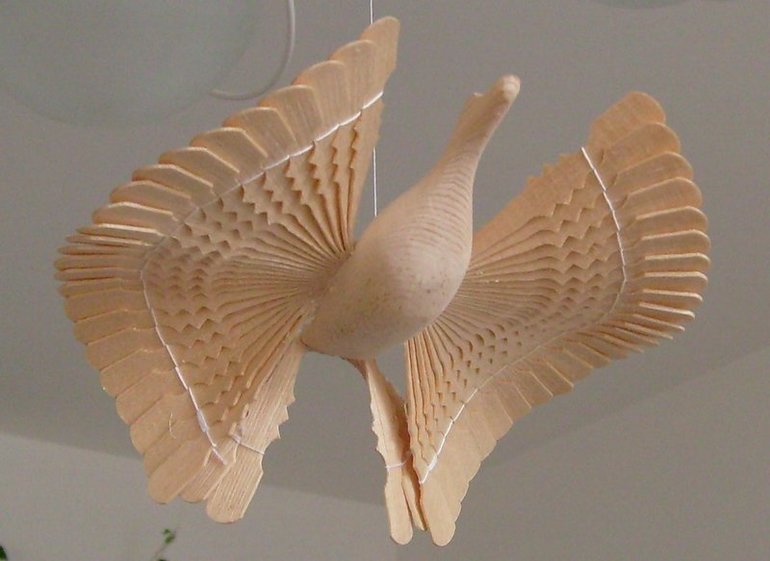 Согласно традициям в этот день в месте, где будут сидеть супруги, должна висеть над их головами деревянная птица счастья (фото взято из википедии),так же в этот день супруги должны на отдельных листочках бумаги написать положительные качества,которые они ценят друг в друге, а на другом- качества, которые им в супруге не нравятся. Не читая этих записок они рвут их на мелкие кусочки и кладут "плохие" в один горшок, а "хорошие"-в другой.