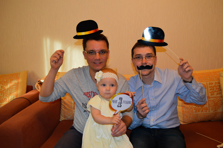 День рождения ДетскийУ Юлечки, дочки моей подруги было годовасие. Но они к сожаление,все заболели и праздника,как такового особо не получилось.Чтобы их хоть чем порадовать,я решила устроить им любительскую фотосессию и благодаря волшебнице Екатерина (фотокалендари, фотосувениры) ,которая сделала нам фотобутафорию нам и им,теперь есть что вспомнить!Катенька,большое спасибо.Обращусь обязательно еще не один раз!Девочки,всем советую Катю в качестве дизайнера!!! а еще мы купили большой шарик "Единичка" в веселой затее - ребенок был счастлив!Так что всем советую этот магазин,там кстати,много аналогов известного американского магазина partycity
