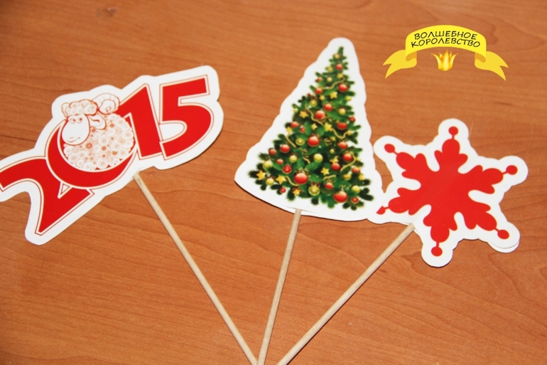 На ножки бокалов вот такие снежинки, но они не простые у всех будут разные картинки, означающие небольшое задание на протяжении новогоднего вечера.