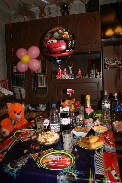 Это чудо сотворила для Тимура замечательный кулинар Мария просто изумительные торты!!! (тут ее темка , заказывайте не пожалеете) . Повторюсь что праздновали мы два дня и на второй день у нас был второй торт с таким же украшением, но содержание мое самое самое любимое это был потрясающий медовик!!!! Причем все слои были разного цвета и детишки сидели и выбирали какого цвета им скушать кусочек, очень забавно получилось!!!