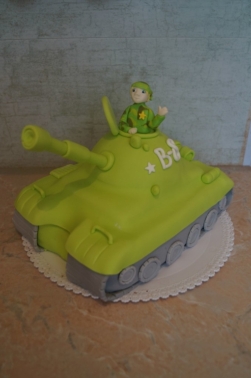 К сожалению не успели сделать семейное фото с целым танком, именинник не удержался и съел свою фигурку из мастики))