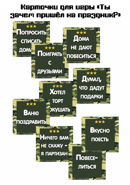Были также застольные игры, например "Ты зачем пришёл на праздник?"