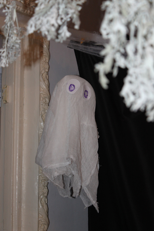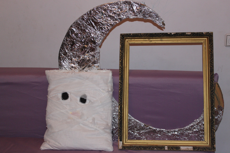 Но и кроме метлы у нас было на что посмотреть: летучие мыши, привидения, дверь-мумия с объявлениями, гигантский месяц и звезды под потолком. Кроме того, паутина и трава сушеная…