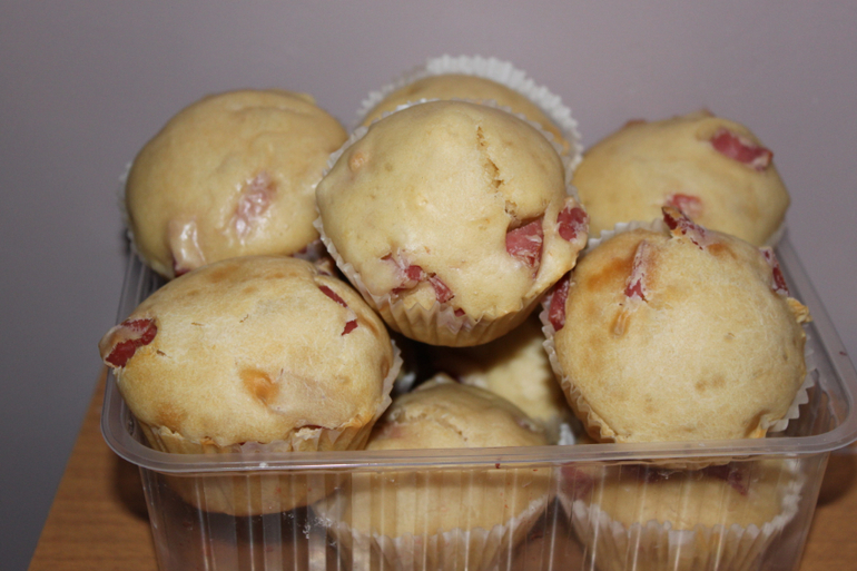 Сначала мы сделали бутерброды, под предлогом того, что каждая волшебница умеет сама себя накормить и гостей тоже! В булку-кайзерку вложили ломтик ветчины и сверху положили сыр. На сыре вырезали глаза и рот. Как у тыквы. А когда я попросила девочек разогреть в микроволновке, они открыли и увидели в ней кексы (я сготовила ночью, поставила чуть подогреться и хотела чтобы они нашли сами, удивились).