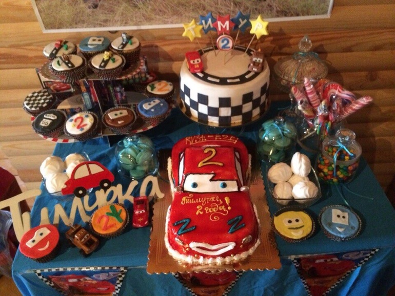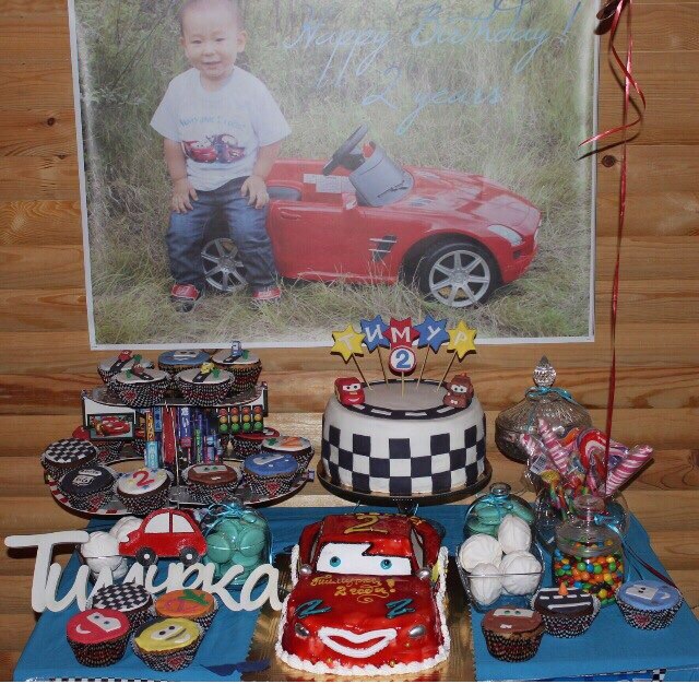 Круть!!! Праздник явно удался ))))Мой тоже фанат тачек...))) Подскажите где заказывали сладости и во сколько обошлись?