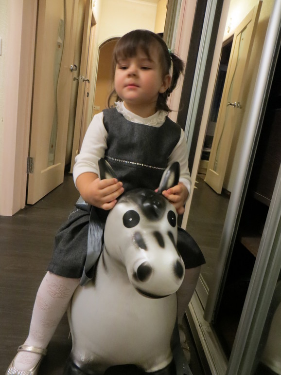 осел-прыгунок У нас не пошел. Ноги не достают до земли, сам на него вскарабкаться не может. А, вот сестра его скакала весь вечер по коридору)