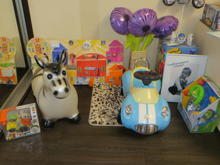 И по мелочи, всякие конструкторы, машинки, паровозик.
