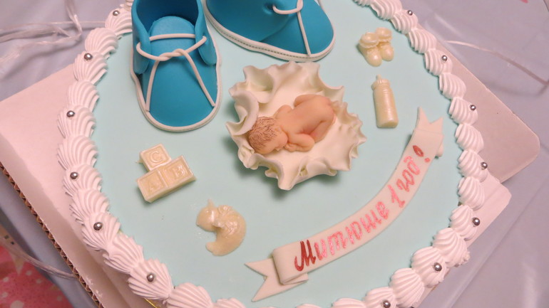 Ну и на последок - ТОРТ! В этот раз (помня про торт на 4,5 кг и как мы его доедали неделю), я заказала маленький тортик на 2 кг, чисто малышковый, очень нежный и вкусный.